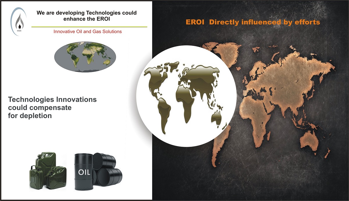 “Oil is the currency of our civilization. It is the number one source and lower cost, scalable carrier of energy providing 33% of worlds’ energy needs. It is a life blood of modern human mobility. Ensuring abundant, sustained, and affordable supply of Oil is at the top of global energy security agenda. However, it seems that days of cheap and abundant oil are numbered. Global supplies of this cheap and abundant resource are increasingly being strained due to ever rising demand and maturation of existing mega oil fields. Global energy return on energy investment “EROI” on oil has gradually dropped from 100-to-15 in last 50 years. EROI is directly influenced by effort. This at the societal level, means that an increasing proportion of energy output and economic activity must be diverted to attaining the energy needed to run an economy, leaving less discretionary funds available for “non-essential” scenarios which often act as catalyst for growth. This declining EROI of traditional fossil fuel energy sources and their effects on the world economy are likely to result in a myriad of consequences, most of, which may not be good. In general, EROI for discovery is declining or flat but EROI for production is clearly declining. If this is true than discovery becomes less important. We at IOGS believe that technological innovations could compensate for depletion. We are developing technologies which could enhance the EROI. Thus, technological interventions might reduce the falling rate of EROI and may buy some time for civilization to bring a mix of competing energy technologies to the market”.